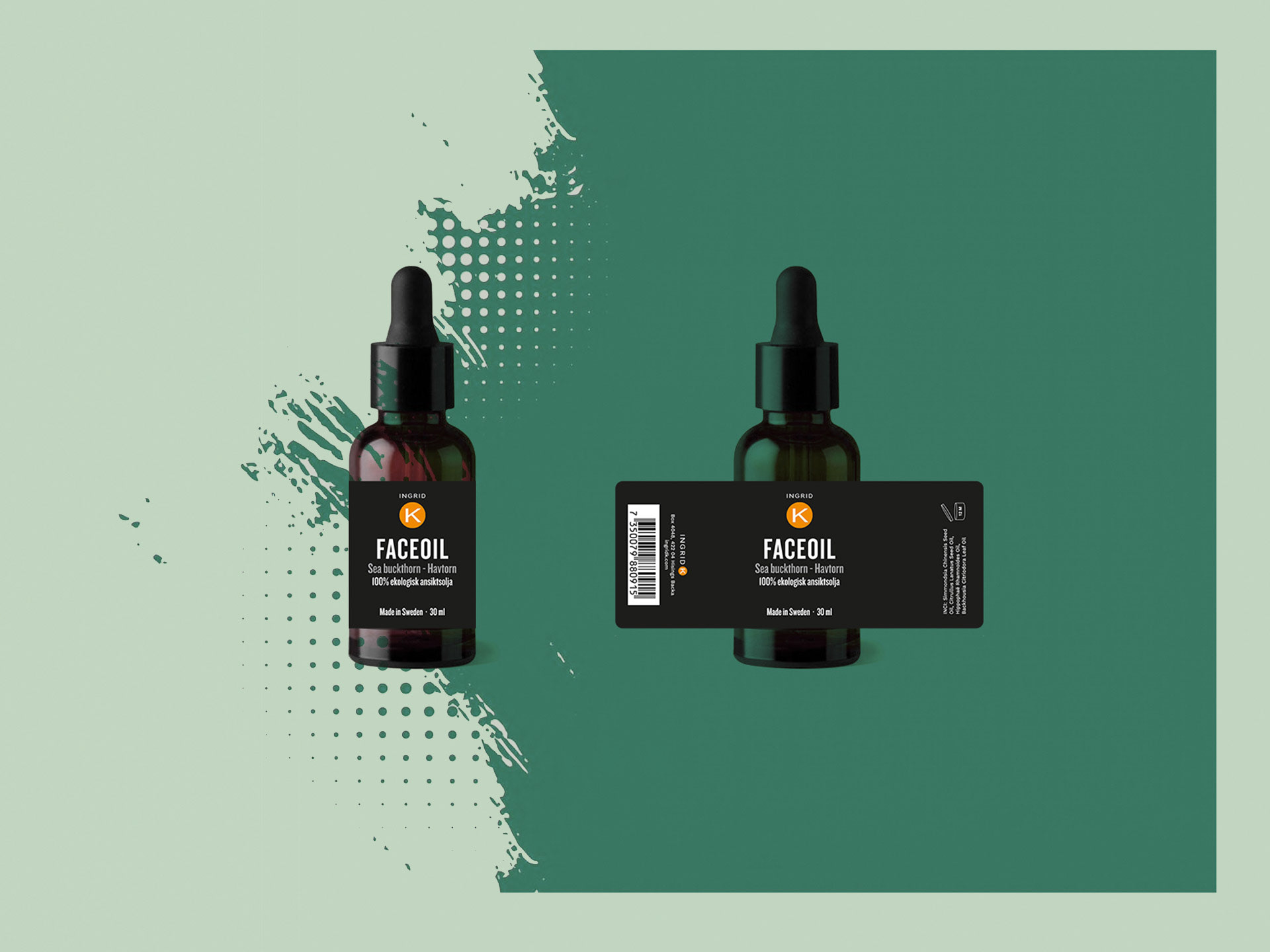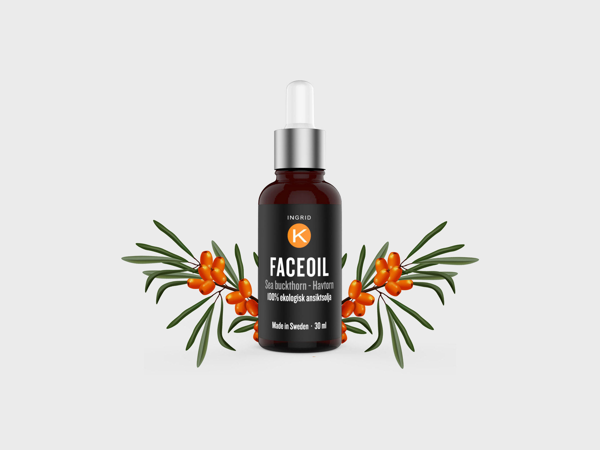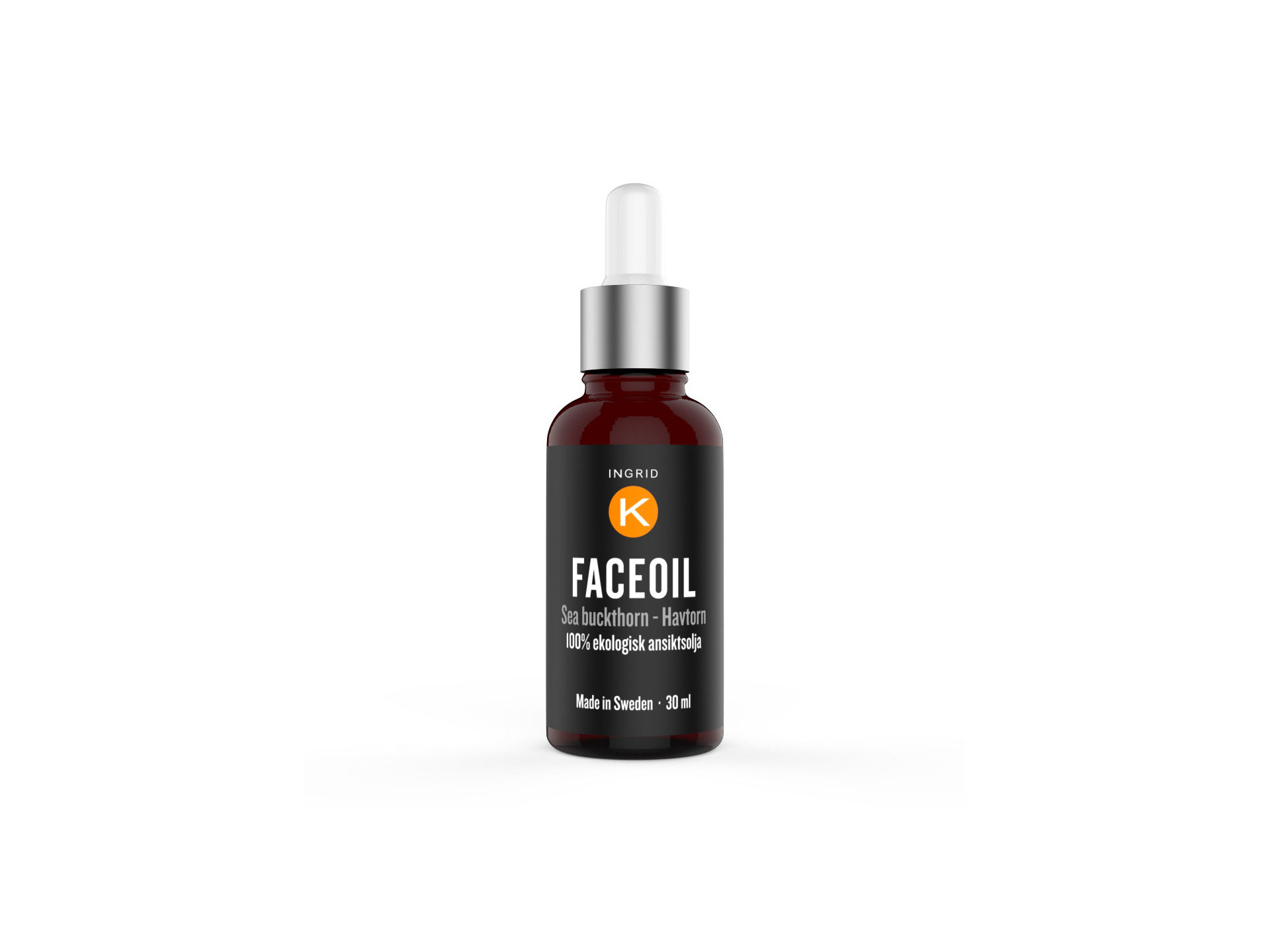 Uppdrag från Ingrid K. Design och layout på ny dekal till Face oil. En fuktighetsbevarande och återfuktande ansiktsolja som är vårdande för alla hudtyper. ingridk.com
