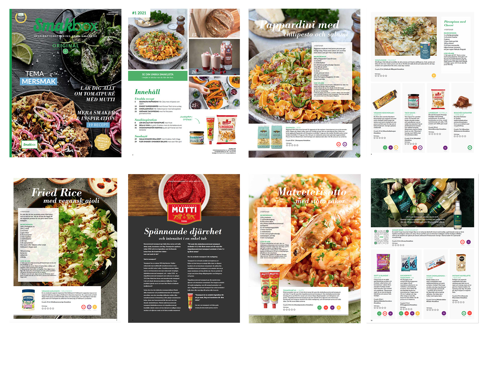 Uppdrag från Smakbox. Skapa en mattidning i A4 format på 32 sidor som skickades med ut i alla Smakbox under 2021. En tidning med inspiration och recept. Upplaga 23 000 ex.